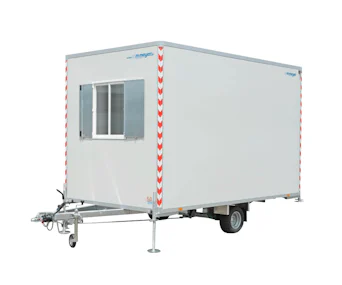 Der Bauwagen wm meyer BW 1537/206 Speed steht online zur Miete bereit. Du hast Anspruch auf alle Serviceleistungen des Anbieters. Der BW 1537/206 Speed ist einachsig mit Tür, Kunststoff-Schiebefenster mit Klappläden und einer einsteckbaren Treppe. Zur Innenausstattung gehören 2 Truhenbänke und ein Tisch mit einer Länge von 1,80 m, ein Elektroheizer mit 2000W und 12V Anschluss mit 13 poligen Stecker mit Kabel. Mit der 220V Elektroanlage ist für Strom und Licht gesorgt.
